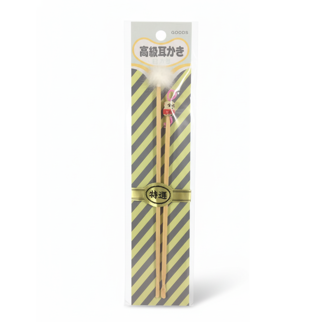 Set tradicional japonés para limpieza de oídos, elaborado en bambú natural. Incluye palillos finos y un removedor con pluma de pato para un uso delicado y seguro. Viene acompañado de una muñeca Kokeshi decorativa, combinando funcionalidad y estética japonesa en un solo producto.